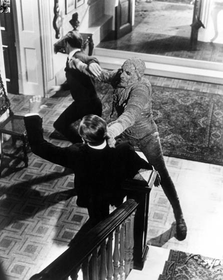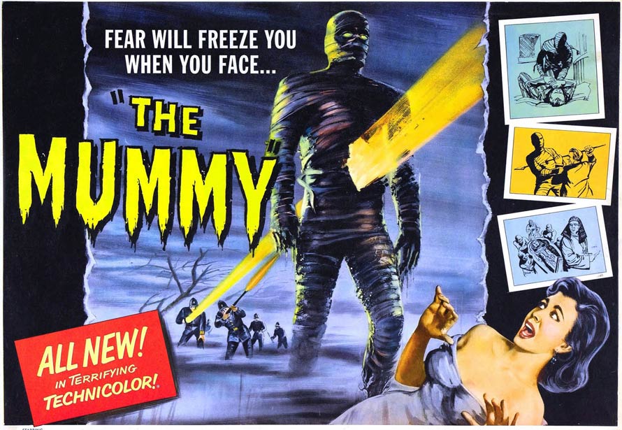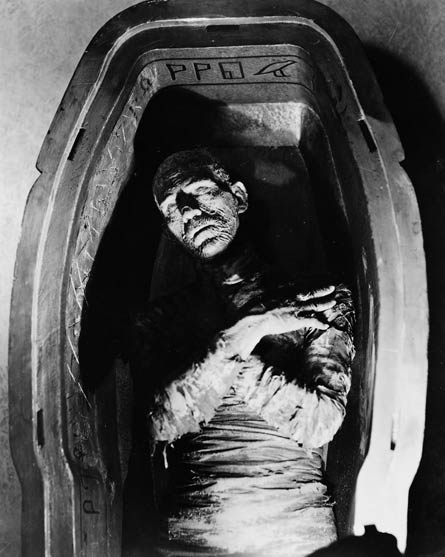 El personaje de Sommers nada tiene a ver con la entrañable momia resucitada que encarnó Boris Karloff, Lon Chaney Jr., Christopher Lee o Paul Naschy. El mito de la momia, potenciado por el cine, entra en Europa gracias al interés que despierta todo lo que rodea al Antiguo Egipto (campaña de Napoleón, 1798, descubrimiento de la piedra Rosetta, los estudios de Champollion). Todo el ambiente entra en la literatura de la mano de Théophile Gautier (“La novela de una momia”) aunque el sustrato fantástico corresponda a Edgar Allan Poe (“Conversaciones con una momia”) y, `por encima de todo, Arthur Conan Doyle --- creador del inmortal Sherlock Holmes --- (“Lote 249”). Extraños acontecimientos al abrir la tumba de Tutankhamon sobre George Herbert, lord de Carnarvon y el arqueólogo Howard Carter enriquecieron el interés sobre el tema que el cine había ya tocado en su período mudo pero la primera versión codificada del mito, instalando los códigos del personaje, fue la producida por Universal en 1932, “The Mummy” (“La momia”), dirigida por aquel gran fotógrafo alemán llamado Karl Freund y protagonizada por Boris Karloff tras su éxito en el film de James Whale (1931), “Frankenstein” (“El doctor Frankenstein”). Sencillamente, fue un éxito. El tema a grandes rasgos, repetido a través de los años, es el siguiente: nuestro protagonista es un hombre del Antiguo Egipto (un príncipe o un sacerdote, generalmente), con grandes conocimientos de la magia y ciencias ocultas, comete el pecado de amar a una mujer “prohibida” (una princesa, casi siempre) y al ser descubierto es condenado a ser “momificado en vida” lo cual produciría la muerte a cualquier ser humano pero él está por encima, en conocimientos, de cualquier ser humano. Después de pasar unos 3000 años de inmovilización y estado letárgico en la tumba se produce un hecho que retornará la vida a la momia y al cobrar total independencia buscará venganza hasta encontrar una muchacha (arqueóloga, por regla general, de la expedición que descubrió su tumba) con un sorprendente parecido con la princesa amada y, por supuesto, se enamorará de nuevo…