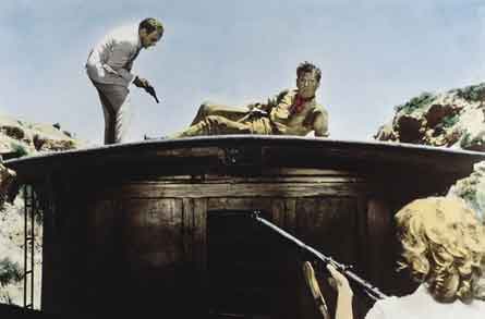 1)- El escritor y guionista Robin Estridge tiene un guión con un esquema semejante: “Escape from Zahrain” (“Fuga de Zahrain”), según una novela de Michael Barret, dirigida Ronald Neame (1961), producida por Paramount y protagonizada por Yul Brynner, Sal Mineo y Jack Warden. Se trata de un líder de un país árabe que debe huir del gobierno dictatorial de su país. Si “La diligencia” era lo que el título indica” y “La India en llamas” era el ferrocarril, aquí se trata de una huída en coche (una ambulancia, si precisamos) por el desierto.