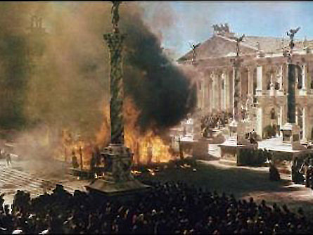 Anthony Mann filma con buen pulso narrativo las escenas íntimas aunque demasiado largas y lentas y no por culpa del realizador, usa significativamente los elementos atmosféricos como la lluvia, la nieve, la niebla, la especificación nocturna (factores poco vistos/usados en el “péplum”) como signos de decadencia, de paz o tranquilidad momentáneas, etc., el señalar al hombre honesto que cumple con su deber (Livio) renunciando al trono asignado por Marco Aurelio el cual había reconocido los excesos y la incipiente crueldad de su hijo y no le quería como sucesor. Hay escenas antológicas como el entierro de Marco- Aurelio, momento en el cual Livio le entrega la antorcha (= la jefatura del Imperio) para iniciar la incineración del difunto, evitando una guerra civil y recuperando (momentáneamente) la amistad de Cómodo. La progresiva decadencia y corrupción de Cómodo, la manipulación del tesoro público por parte del emperador para asegurarse riquezas, la carestía del pueblo llano en paralelo, el combate final en el circo y, sobretodo, aquella carrera de cuadrigas compitiendo Livio y Cómodo que en nada envidia a la más famosa de Ben- Hur (en un terreno regular, el circo, mientras que en “La caída del Imperio Romano” es en el bosque bordeado de precipicios, ríos y subidas/bajadas en colinas) pero, al fin y al cabo, estas magníficas escenas de carreras en ambos films están realizadas por el director de 2ª unidad y especialista Yakima Canutt, así como algunos momentos sueltos filmada por Andrew Marton (sin acreditar) en ausencia de Mann… La secuencia final, cogida por los pelos, debe colocarse en el debe del guión: Livio, después de matar a Cómodo, llega justo a tiempo de salvar a su prometida Lucilla, hermana del emperador, de la inmensa pira donde la había condenado Cómodo mientras los bárbaros prisioneros mueren abrasados en el fuego maldiciendo a Roma; se oyen voces de los senadores y pretorianos subastando la jefatura del Imperio rechazada por Livio. En la realidad fue nombrado emperador el que había sido cónsul y gobernador Publio Helvio Pertinax cuyo reinado duró 86 días ---apuñalado el 28 de marzo del 193 --- y fue sucedido por el banquero Didio Juliano, emperador del 28 de marzo al 1 de junio del 193 (ahora sí, el Imperio fue ofrecido en subasta), siendo substituido por Cayo Prescenio Niger, gobernador de provincias y militar (mediados de abril del 193 a marzo del 194), al igual que Clodio Albino (se proclamó emperador en otoño del 196 y cayó en combate contra el general Septimio Severo el 19 de febrero del 197). Por fin Septimio Severo (padre del también futuro emperador Caracalla, de características parecidas a Cómodo) dio, aunque en tiempo de decadencia, un gobierno de relativa estabilidad. Estos fueron los sucesores de Cómodo, implicados en la Guerra Civil del llamado tiempo “De los cinco emperadores”, cuyas consecuencias fueron lamentables para el futuro de Roma, una crisis más fuerte que la acaecida tras la muerte de Nerón, sucedida más de un siglo antes (muerte en el 68, Guerra Civil en el 69, llamado “Año de los cuatro emperadores”).