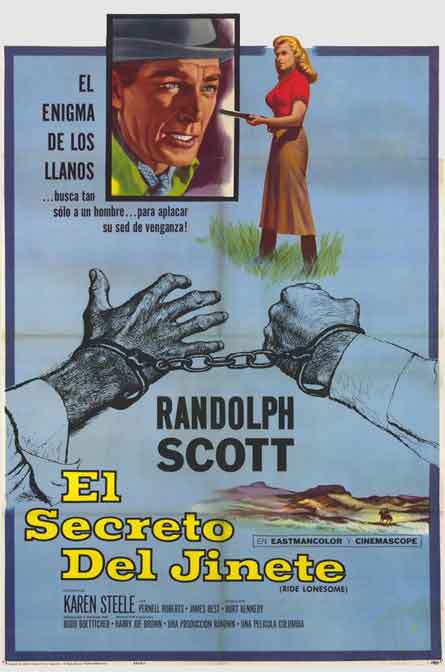 Una vez planteado el enunciado del ciclo ha de decirse que NINGUNO de estos siete films se estrenó comercialmente en España ¿Causas? Podrían ser una o varias: 1) la polémica aparecida en los años 50 entre el Gobierno Español y la compañía Columbia al producir alguna película considerada antifranquista, 2) el aumento de cuota de pantalla que obligaba a las compañías americanas a distribuir una película española por la concesión de permisos de doblaje (el contencioso duró algunos años), 3) el no ser cabeceras de lista en las dos compañías distribuidoras, Warner y Columbia, y 4) el creer algunos distribuidores españoles, dentro de su cortedad de miras, que Randolph Scott (1903-1987) no vendía como galán-protagonista (tenía más de 50 años al iniciarse la serie) cuando precisamente en todos los títulos debía representar esta edad, no un galán al uso sino un hombre maduro, a veces viudo, solitario en general, de habla parca, entendido en caballos, armas y ranchos; no estaba en la línea de Gary Cooper, Gregory Peck o James Stewart (recordemos de este último su valiosa colaboración en la serie de westerns con Anthony Mann) ni falta que hacía, tenía su estilo propio y válido; debía dar este tipo humano y creo que pocos lo hubieran hecho tan acertadamente como él.