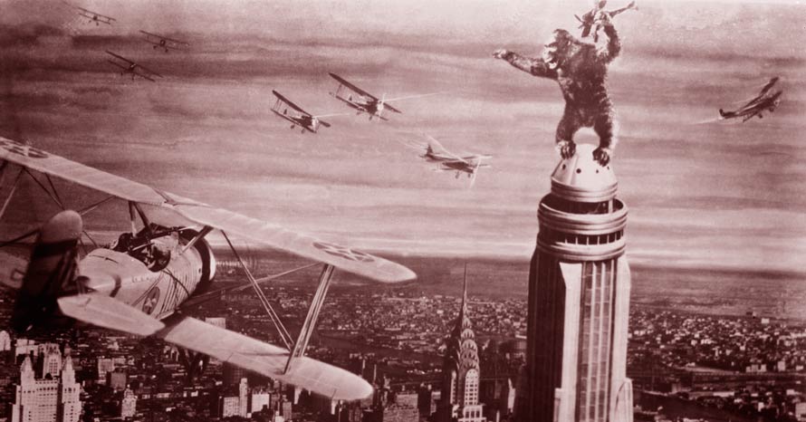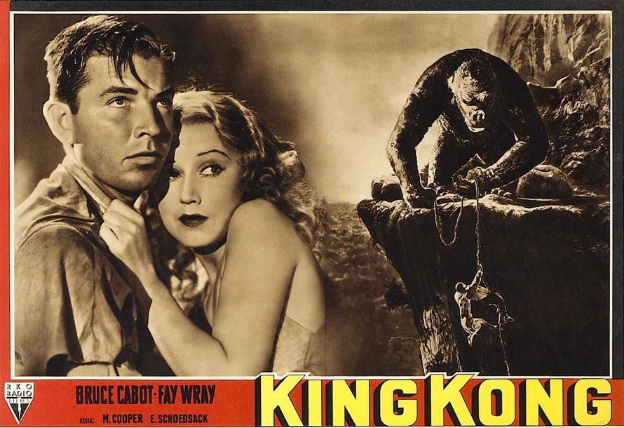Es conocida la historia del aventurero y realizador cinematográfico Carl Denhan (Bruce Cabot) --- proyección dentro de la pantalla del dúo Schoedsack- Cooper --- el cual embarca en busca de una isla perdida y ausente en muchos mapas llamada “Skull” (“Calavera”) donde hay la leyenda de estar habitada por animales prehistóricos y un gorila gigante de unos 15 m de altura. Acompañan a Denham la bella Ann Darrow (Fay Wray), a quien había encontrado robando manzanas (estamos en USA, durante la depresión iniciada en 1929) y Jack Driscoll (Bruce Cabot). Los nativos de la isla, separados de “la parte prehistórica” por una muralla, raptan a Ann para ofrecérsela al dios- Kong pero este no la matará sino que se enamorará de ella y la defenderá de tres depredadores: un Tyranosaurus Rex, un Notosaurus (anfibio, prácticamente una serpiente con patas) y un Pteranodon. La muchacha es rescatada por Driscoll, derrumba Kong la puerta de separación del mundo perdido- poblado de indígenas y finalmente es capturado al arrojarle Denhan una granada lacrimógena. Llevado a nueva York para ser exhibido como “la octava maravilla”, el simio se excita ante los flashes de los fotógrafos (cree que hacen daño a su enamorada), rompe las cadenas y huye a la calle sembrando la destrucción, el terror y la muerte hasta encontrar a Ann a quien rapta y huye con ella en lo alto del Empire State. Deposita a Ann en una pequeña terraza mientras es abatido por la aviación militar, cayendo al vacío (los aviadores con bufanda del biplano monomotor que mata a Kong --- el animal había logrado derribar a uno --- eran los mismos Schoedsack y Cooper). “Por fin la aviación ha acabado con él”, dice un policía. Denham contesta: “No, ha sido una mujer”.