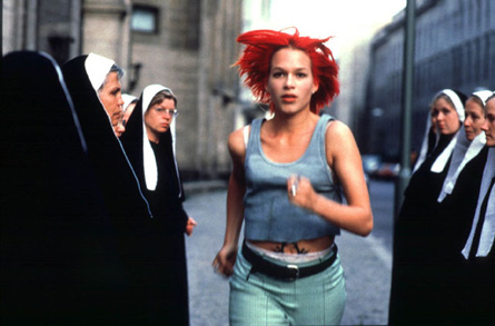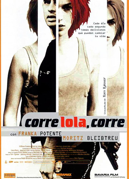 Corre, Lola, corre. Título original: Run, Lola, Run (Lola rennt). Año: 1998. Duración: 73 min. País: Alemania]. Director: Tom Tykwer. Guión: Tom Tykwer. Música: Tom Tykwer, Johnny Klimek, Reinhold Heil. Fotografía: Frank Griebe. Reparto: Franka Potente, Moritz Bleibtreu, Herbert Knaup, Nina Petri, Joachim Król, Armin Rohde, Heino Ferch, Suzanne von Borsody, Sebastian Schipper, Ludger Pistor, Julia Lindig, Lars Rudolph, Ute Lubosch. Productora: X-Filme Creative Pool / WDR / Arte. Género: Acción. Drama | Película de culto.