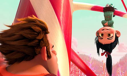 Los personajes están muy bien estudiados para resultar entrañables y se ganan enseguida el favor del público al cual va dirigida la cinta. Un gigantón cansado de ser el “malo” y una pequeña niña marginada en su videojuego porque produce destellos. La llaman una “glish”, en realidad una paria de la que nadie quiere saber nada. Una vez más la Disney recurre al tema del marginado que se desea integrar en la sociedad, o mejor dicho una nueva versión del “patito feo” rechazado por todos hasta descubrir que es un cisne.
