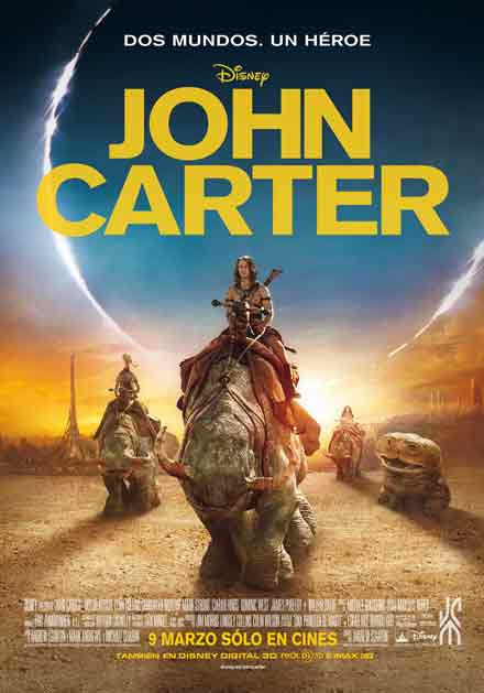 John Carter. AKA: John Carter of Mars. Dirección: Andrew Stanton. País: USA. Año: 2012. Duración: 132 min. Género: Acción, aventuras, ciencia-ficción, fantástico. Interpretación: Taylor Kitsch (John Carter), Willem Dafoe (voz original de Tars Tarkas), Lynn Collins (Dejah Thoris), Samantha Morton (Sola), Mark Strong (Matai Shang), Ciarán Hinds (Tardos Mors), Dominic West (Sab Than), James Purefoy (Kantos Kan), Daryl Sabara (Edgar Rice Burroughs), Polly Walker (Sarkoja), Bryan Cranston (Powell), Thomas Haden Church (voz original de Tal Hajus). Guion: Andrew Stanton, Mark Andrews y Michael Chabon; basado en la novela “Una princesa de Marte”, de Edgar Rice Burroughs. Producción: Jim Morrison, Colin Wilson y Lindsey Collins. Música: Michael Giacchino. Fotografía: Dan Mindel. Montaje: Eric Zumbrunnen. Diseño de producción: Nathan Crowley. Vestuario: Mayes C. Rubeo. Distribuidora: The Walt Disney Company. Estreno en USA: 9 Marzo 2012. Estreno en España: 9 Marzo 2012.