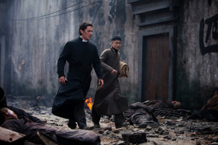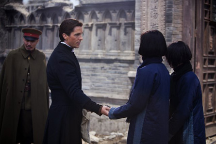 Las flores de la guerra no es una película bélica, la guerra está tomada como telón de fondo para unos dramas humanos. Una serie de personajes, un ayudante de párroco, unas novicias, unas prostitutas, dos soldados chinos y un vividor estadounidense se ven atrapados en el interior de una iglesia católica. En los primeros minutos, el americano Christian Bale se comporta de una forma idiota y egoísta semejante al papel de James Stewart en Dos cabalgan juntos provocando bastante irritación. Sin embargo el personaje acaba por tomar conciencia de la situación comportándose de forma altruista.
