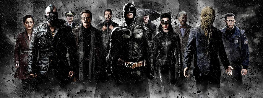 El Caballero Oscuro: La leyenda renace. Título original: The Dark Knight rises. AKA: Batman 3. Dirección: Christopher Nolan. Países: USA y Reino Unido. Año: 2012. Interpretación: Christian Bale (Bruce Wayne/Batman), Tom Hardy (Bane), Gary Oldman (James Gordon), Anne Hathaway (Selina Kyle/Catwoman), Morgan Freeman (Lucius Fox), Michael Caine (Alfred), Marion Cotillard (Miranda Tate), Joseph Gordon-Levitt (John Blake), Daniel Sunjata (agente de operaciones especiales), Josh Pence (joven Ra’s Al Ghul), Diego Klattenhoff (policía novato), Nestor Carbonell (alcalde de Gotham City), Juno Temple (Holly Robinson), Matthew Modine (Foley), Christopher Judge. Guion: Jonathan Nolan y Christopher Nolan; basado en un argumento de David S. Goyer y Christopher Nolan; a su vez basado en los personajes creados por Bob Kane. Producción: Christopher Nolan, Charles Roven y Emma Thomas. Música: Hans Zimmer. Fotografía: Wally Pfister. Montaje: Lee Smith. Diseño de producción: Nathan Crowley. Vestuario: Lindy Hemming. Distribuidora: Warner Bros. Pictures International España. Estreno en USA: 20 Julio 2012. Estreno en España: 20 Julio 2012. Duración: 164 min. Género: Acción, thriller.