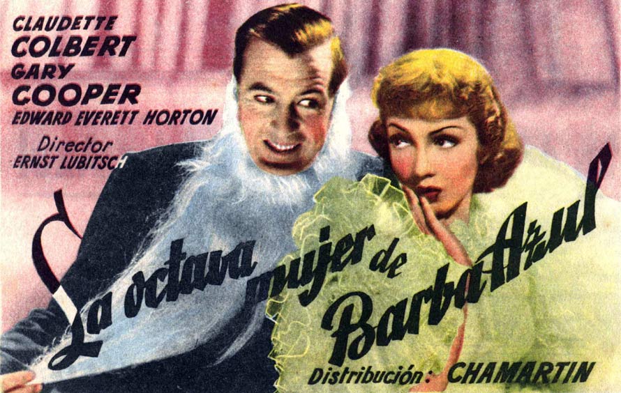 LA OCTAVA MUJER DE BARBA AZUL. Título original: Bluebeard's Eighth Wife. Año 1938. País: Estados Unidos. Director: Ernst Lubitsch. Intérpretes: Gary Cooper, Claudette Colbert, David Niven, Edward Everett Horton, Elizabeth Patterson, Herman Bing, Franklin Pangborn, Armand Cortes, Rolfe Sedan, Lawrence Grant, Lionel Pape. Guión: Charles Brackett & Billy Wilder (Basada en una obra de teatro de Alfred Savoir). Música: Frederick Hollander & Werner R. Heymann. Fotografía: Leo Tover (B&W). Productora: Paramount Pictures. Duración 80 minutos. Comedia | Comedia romántica. Comedia sofisticada