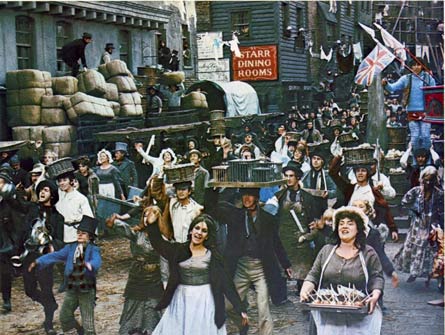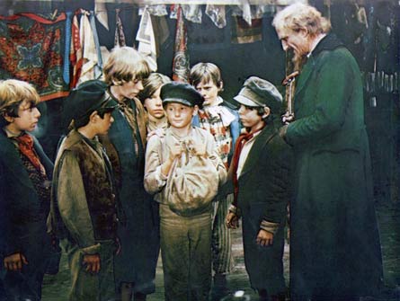 son sensacionales y el número Revisemos la situación a cargo de Ron Moody es genial. El papel de Fagin ha sido tan suavizado que incluso resulta simpático. Algunas notas musicales revelan el origen judío del personaje, Charles Dickens era antisemita, creo un ser despreciable y odioso que por lo general ha sido interpretado por grandes histriones como Lon Chaney, Alec Guinness o Ben Kingsley. Fagin es un papel muy goloso para todo actor que se precie por la complejidad de un carácter atormentado.