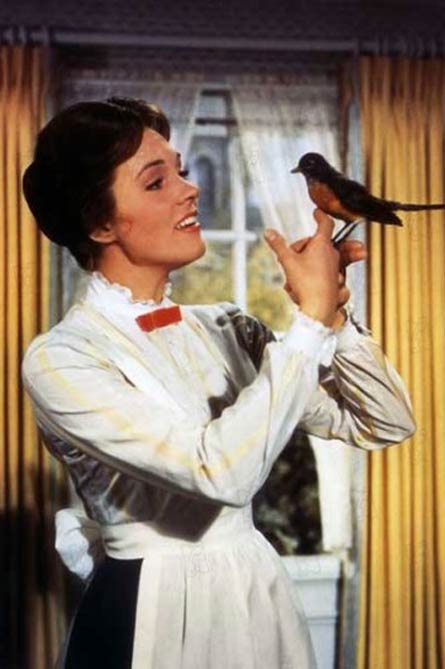 La protagonista femenina es Julie Andrews en su debut cinematográfico. Disney la vio en una obra de Broadway, Camelot, que le dejó completamente impresionado.