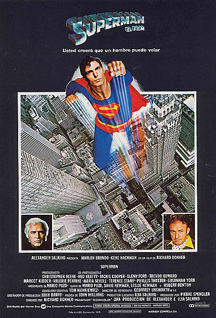 SUPERMAN: LA PELICULA. Título original: Superman: The Movie. Año 1978. País: Reino Unido. Director: Richard Donner. Reparto: Christopher Reeve (Superman / Clark Kent), Margot Kidder (Lois Lane), Marlon Brando (Jor-El), Gene Hackman (Lex Luthor), Susannah York (Lara), Ned Beatty (Otis), Jackie Cooper (Perry White), Glenn Ford (Jonathan Kent), Trevor Howard (Consejero), Jack O'Halloran (Non), Valerie Perrine (Eve Teschmacher), Maria Schell (Vond-Ah), Terence Stamp (General Zod), Sarah Douglas (Ursa), Phyllis Thaxter (Martha Kent), Jeff East (Clark Kent joven), Marc McClure (Jimmy Olsen), Harry Andrews (Consejero), Larry Hagman (Mayor), Kirk Alyn (general Sam Lane), Richard Donner (transeunte), Noel Neill (Ella Lane). Guión: Robert Benton, David Newman, Leslie Newman, Mario Puzo (Cómic: Joe Shuster, Jerry Siegel). Música: John Williams. Fotografía: Geoffrey Unsworth. Dovemead Films / Film Export A.G. / International Film Production. Duración: 143 minutos. Ciencia ficción. Fantástico. Aventuras | Superhéroes. Cómic. DC Comics