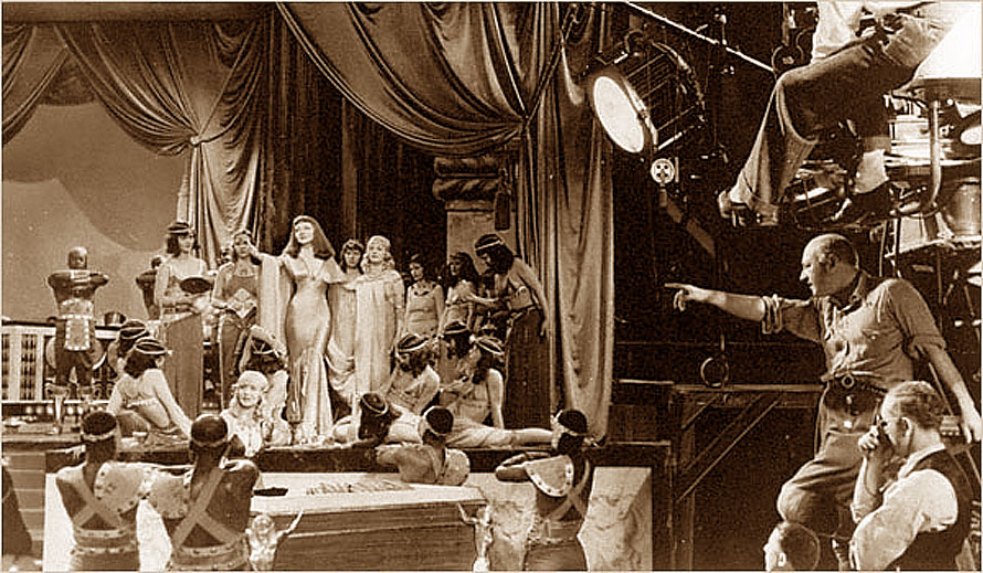 DeMille le da su toque. Son los años treinta, muy fructíferos para el gran cineasta, con su serie de películas sonoras en blanco y negro, rodados en estudio principalmente y donde vemos muchas de sus fantasías eróticas a cada cual más sensacional como esa red de pescadores que lleva en su interior bellas mujeres que ofrecen ostras con diamantes en su interior al estupefacto Marco Antonio. Esa nave de ensueño que surca el Nilo.