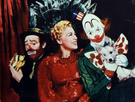 EL MAYOR ESPECTÁCULO DEL MUNDO. Título original: The Greatest Show on Earth. Año: 1952. País: Estados Unidos. Director: Cecil B. DeMille. Reparto: Betty Hutton (Holly). Cornel Wilde (El Gran Sebastian). Charlton Heston (Brad Braden). Dorothy Lamour (Phyllis). Gloria Grahame (Angel). Henry Wilcoxon (Agente FBI Gregory). Lyle Bettger (Klaus). Lawrence Tierney (Mr. Henderson). Emmett Kelly (Él Mismo), Cucciola (Él Mismo), Antoinette Concello (Ella Misma), John Ringling North (Él Mismo), Tuffy Genders (Él Mismo), James Stewart ('Buttons' el Clown), William Boyd (Hopalong Cassidy), Bing Crosby (espectador), Bob Hope (espectador), Edmond O'Brien (Midway Barker). Guión: Fredric M. Frank, Barré Lyndon, Theodore St. John (Historia: Fredric M. Frank, Theodore St. John, Frank Cavett). Música: Victor Young. Fotografía: George Barnes. Paramount Pictures. Duración: 153 minutos. Aventuras, circo.